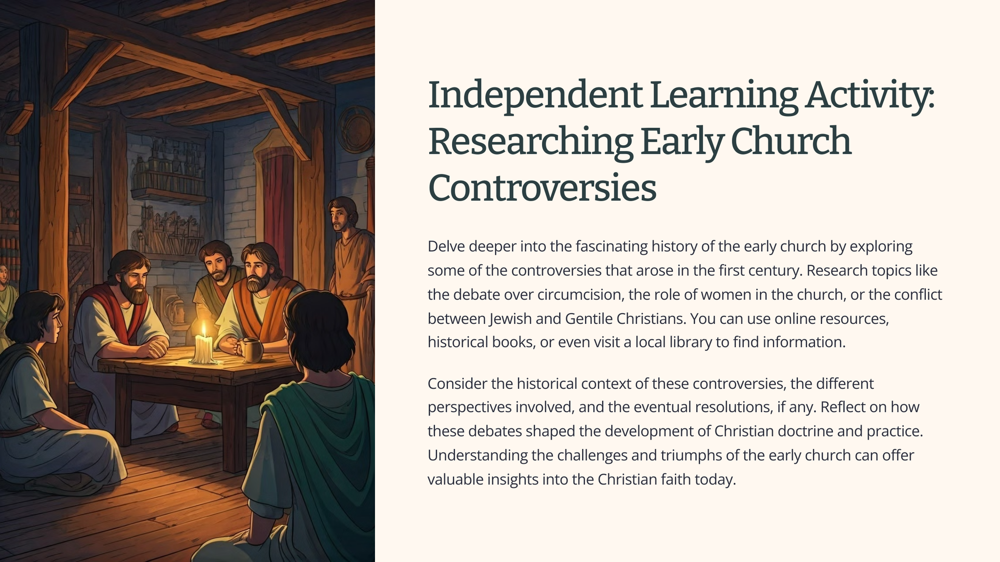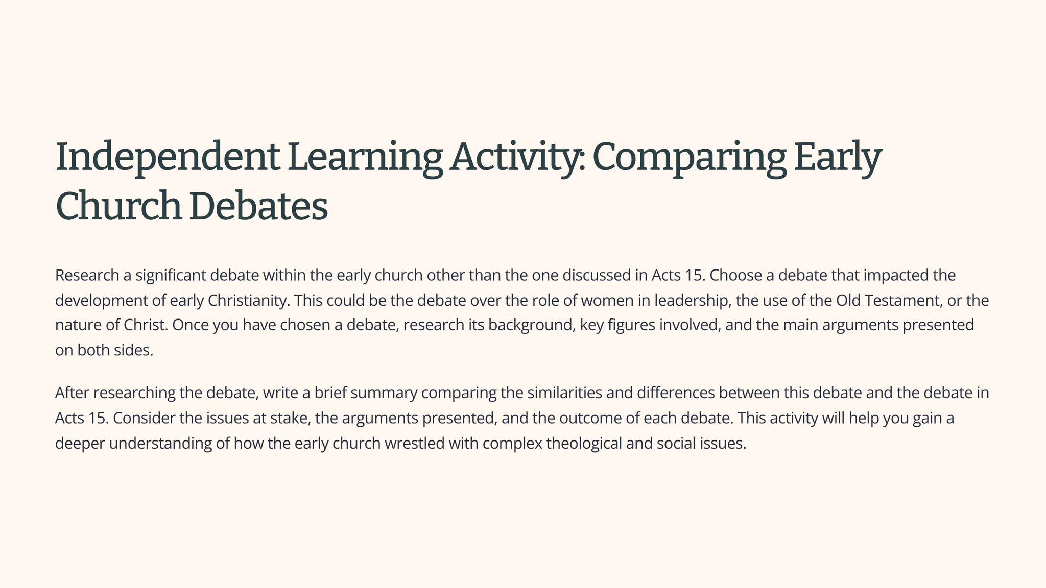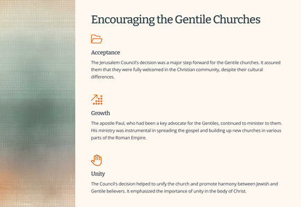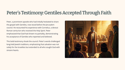 Die boek Handelinge vertel die groei van die vroeë Christelike kerk. In hoofstuk 15 ontmoet ons 'n deurslaggewende oomblik wat die toekoms van die Christendom direk vorm. Die apostels en ouderlinge kom in Jerusalem bymekaar om die groeiende spanning tussen Joodse en nie-Joodse gelowiges aan te spreek. Die kwessie ter sprake is of heidene Joodse wette, spesifiek die besnydenis, moet volg om Christene te word. Die uitkoms van hierdie vergadering sal beduidende implikasies hê vir die verspreiding van die Christendom deur die hele Romeinse wêreld.