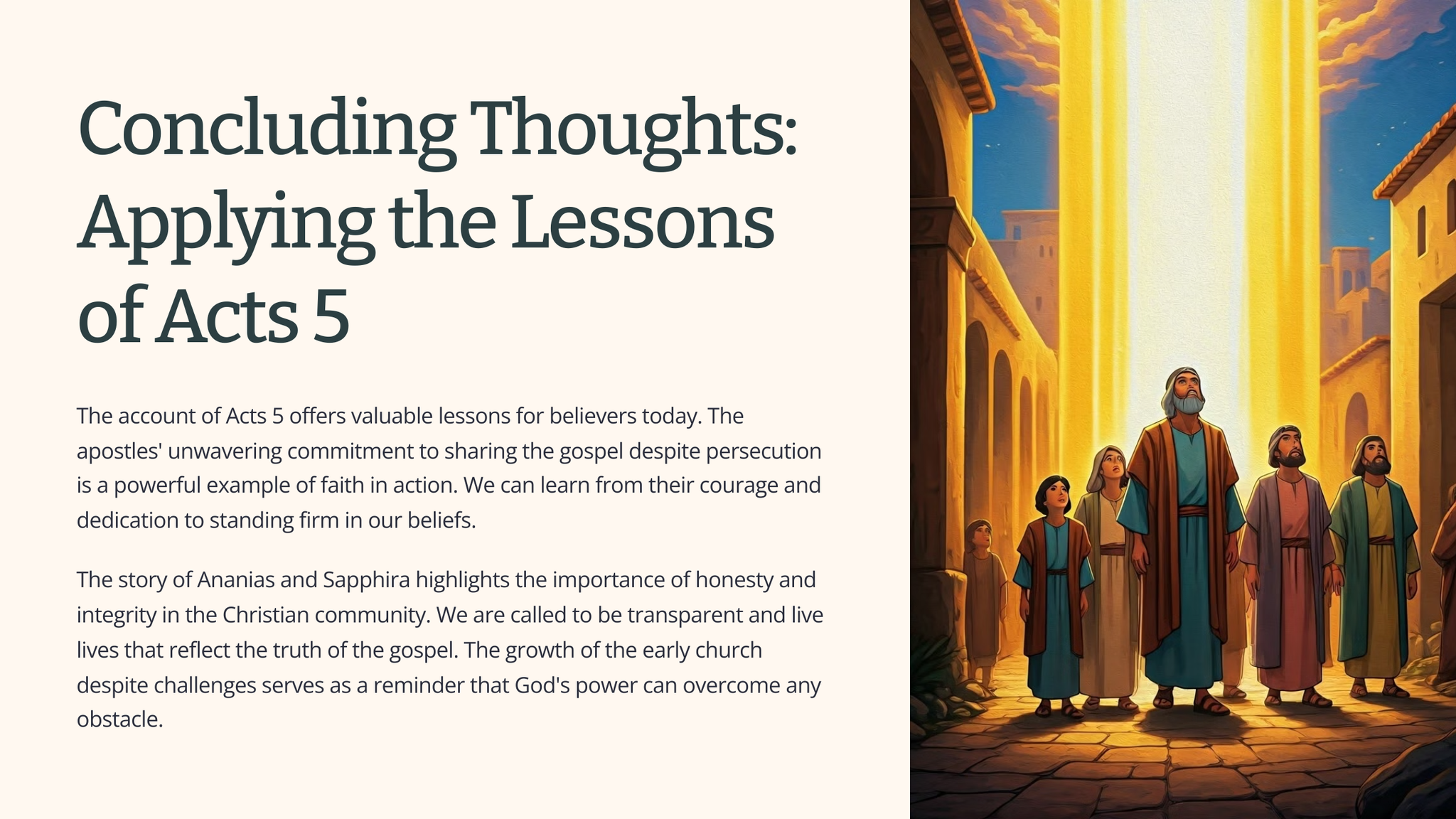 In Handelinge 5 kry ons 'n kragtige illustrasie van die belangrikheid van gebed en vrymoedigheid in die Christelike geloof. Die verhaal van die apostels wat vervolging vir hul geloof in die gesig staar, en hul onwrikbare verbintenis om die Evangelie te deel, dien as 'n tydlose herinnering aan die transformerende krag van gebed en die moed wat voortspruit uit die navolging van Christus.
