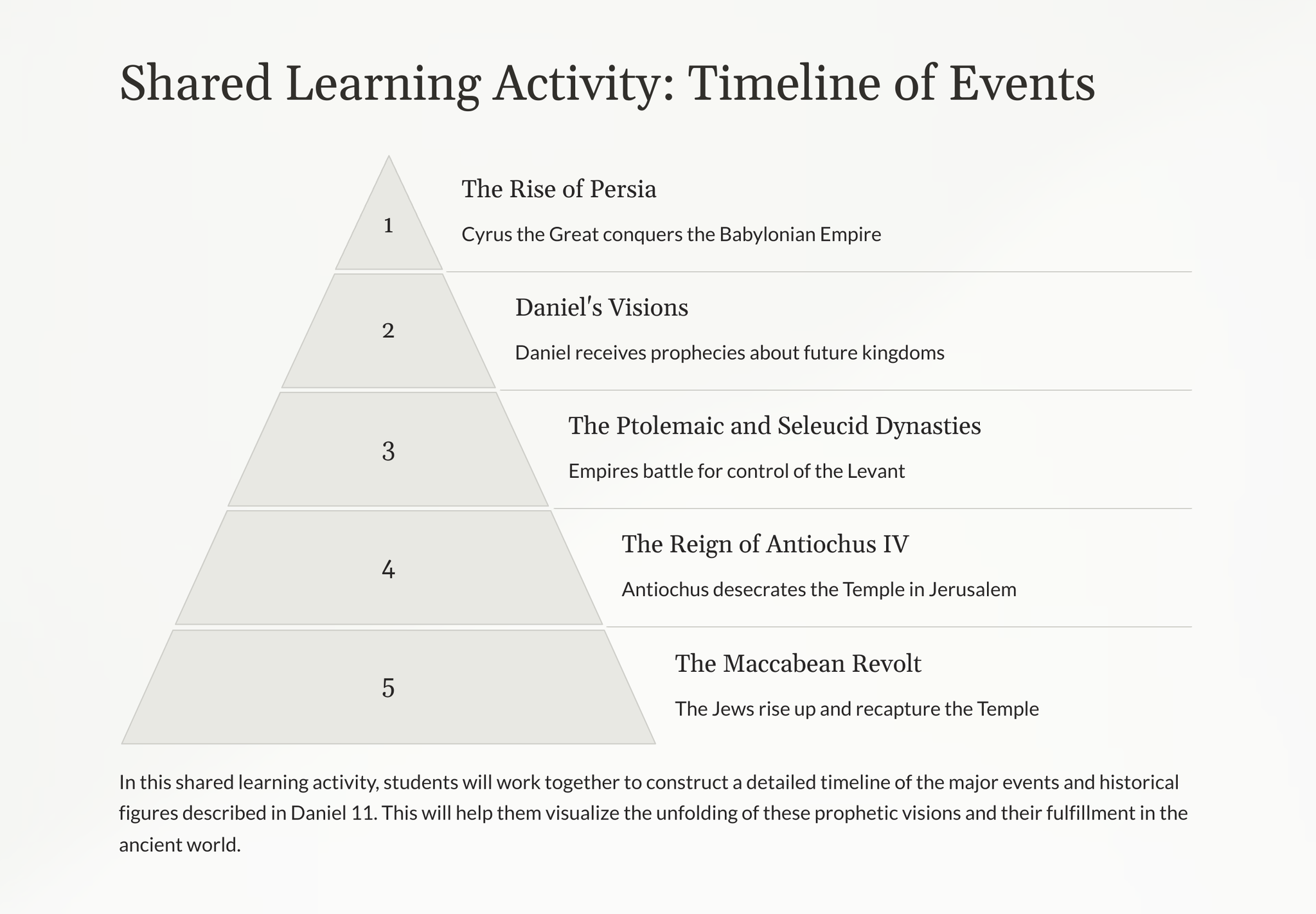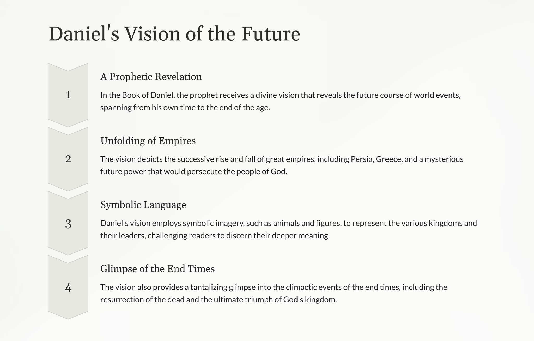 Verken die fassinerende profesieë en visioene wat aan die Bybelse figuur Daniël geopenbaar is, terwyl hy 'n gedetailleerde weergawe van toekomstige gebeure onthul wat diepgaande implikasies vir die wêreld het.