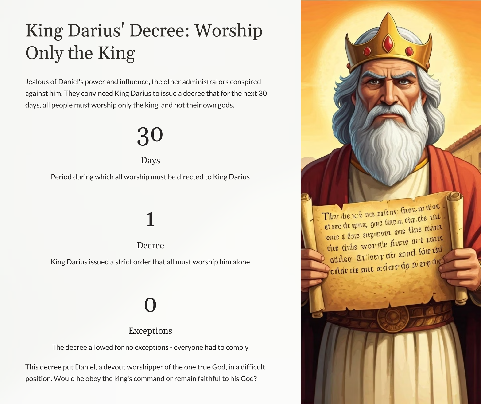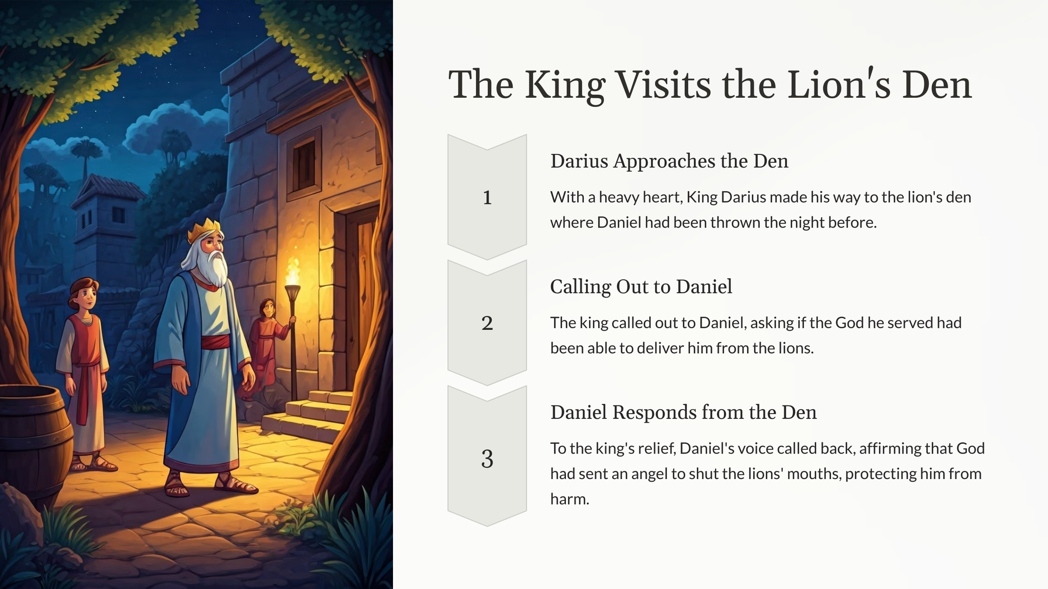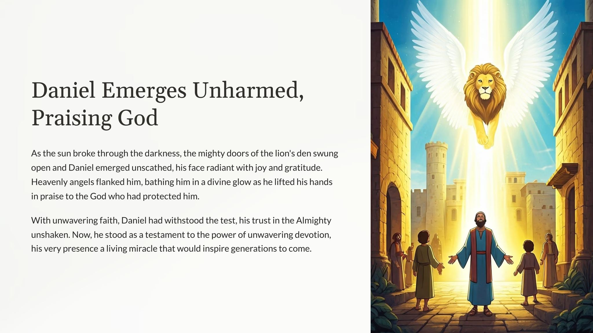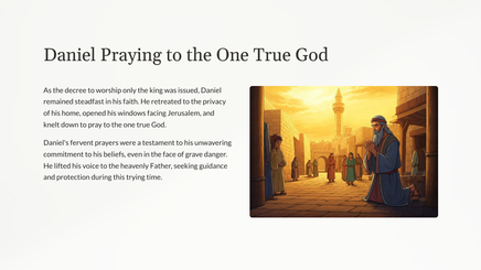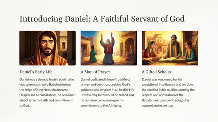 Verken die boeiende verhaal van Daniël, 'n man van onwrikbare geloof, wat 'n verraderlike toets in die leeukuil deurgemaak het.