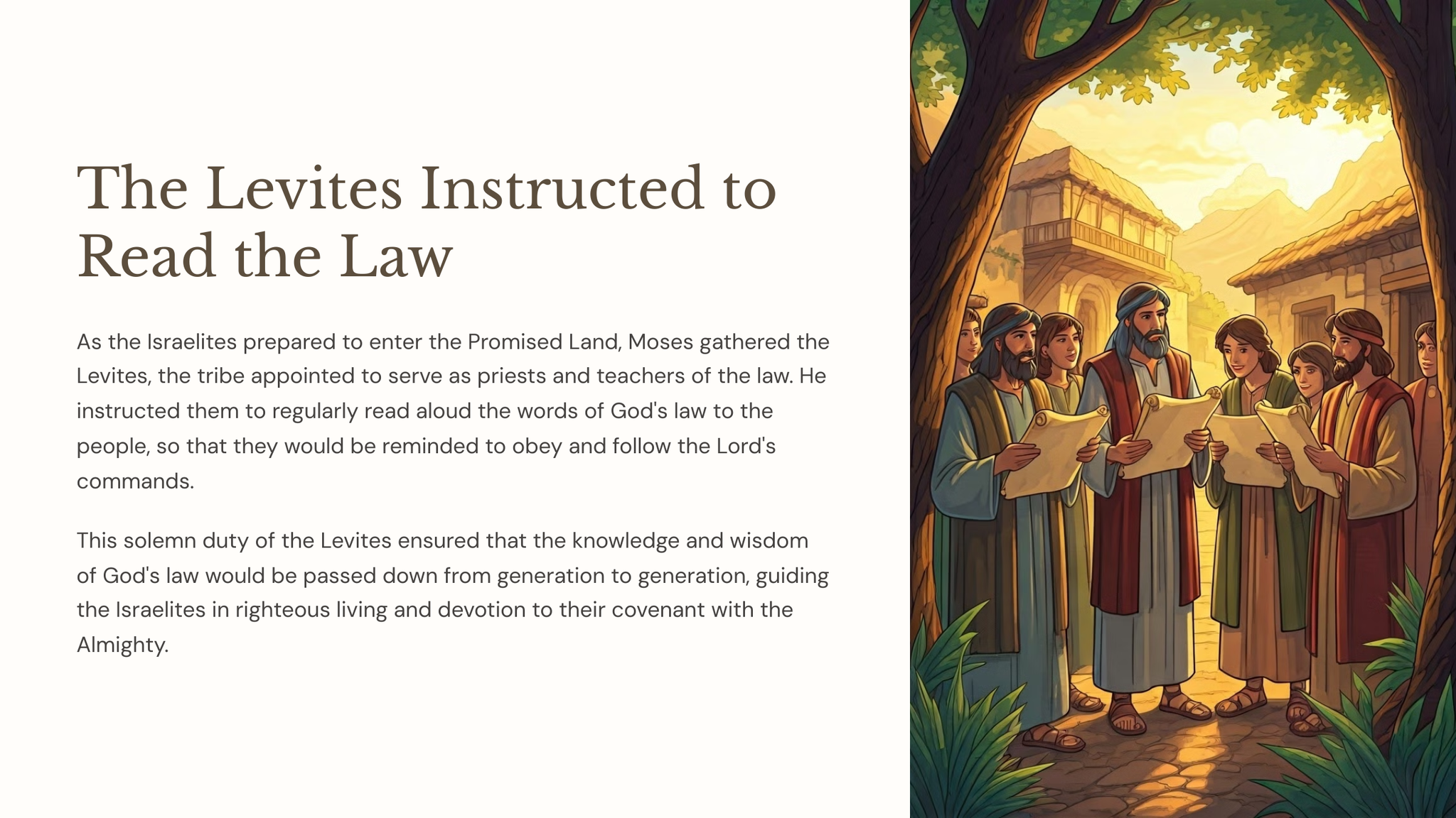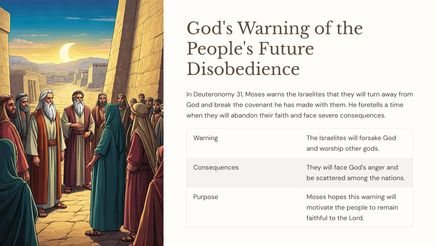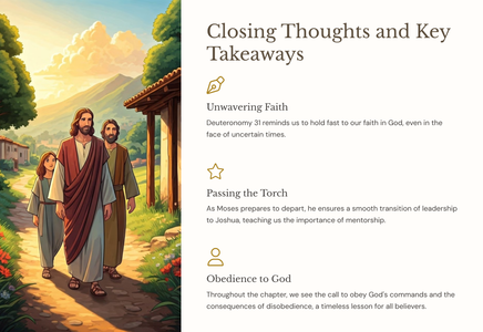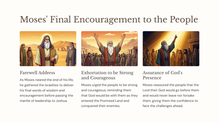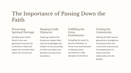 Toe Moses die einde van sy lewe nader, het hy die Israeliete beveel om getrou aan die Here te wees en Sy leringe aan die volgende geslag oor te dra. Hierdie afdeling ondersoek hoe God se mense die jeug effektief kan dissipel en toerus om Hom te volg.