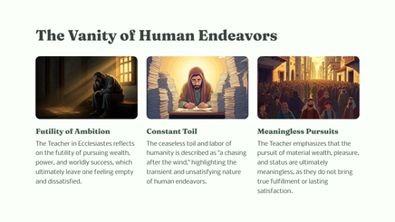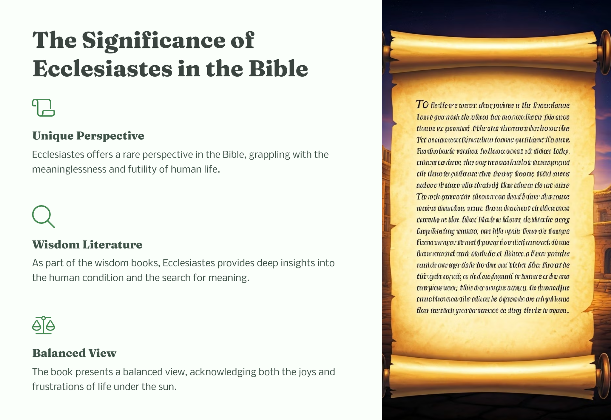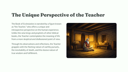 Delf in die diepgaande insigte en universele waarhede wat gevind word in die antieke boek Prediker, 'n tydlose verkenning van die menslike toestand en die soeke na sin in die lewe.