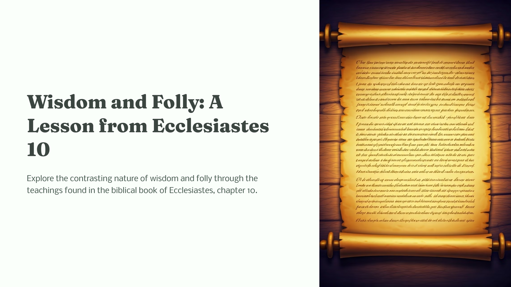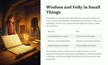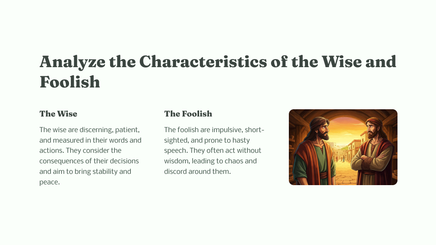 Verken die kontrasterende aard van wysheid en dwaasheid deur die leringe wat in die Bybelse boek Prediker, hoofstuk 10, gevind word.