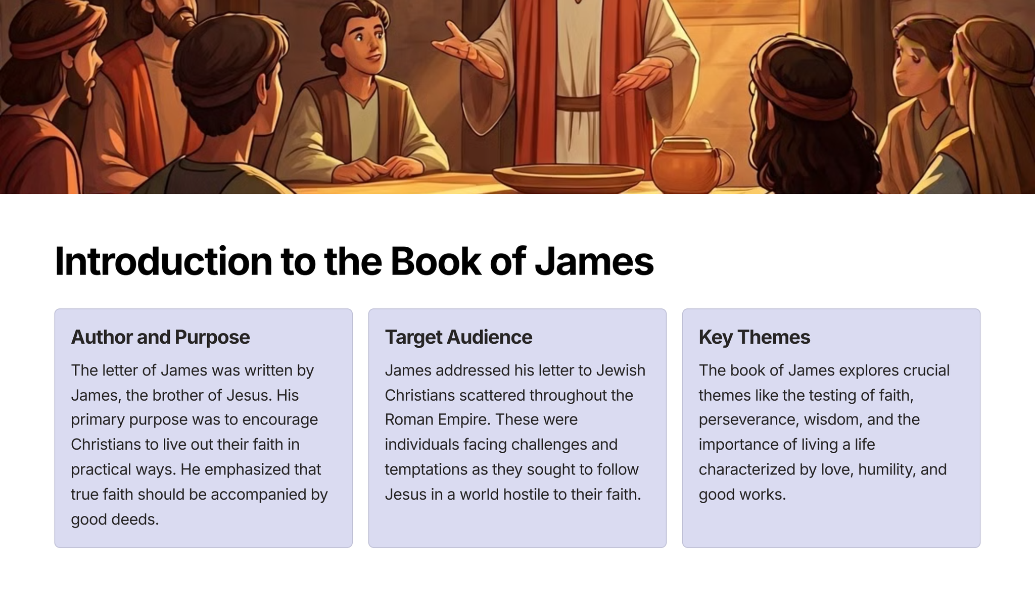 Die brief van Jakobus is 'n boek van die Nuwe Testament wat die praktiese toepassing van geloof in die alledaagse lewe ondersoek. Dit moedig lesers aan om deur geloof te lewe, nie net woorde nie, en om op hul oortuigings te handel deur goeie dade.