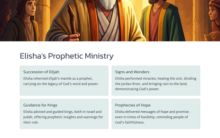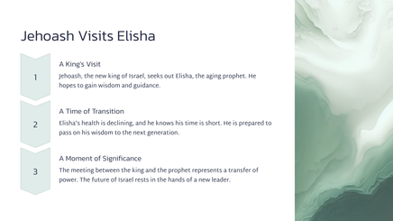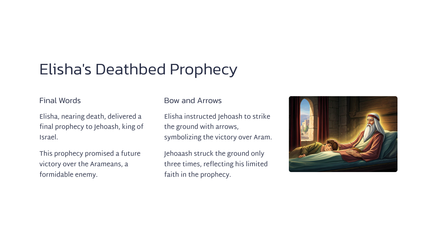 Hierdie studie van 2 Konings 13 fokus op die nalatenskap van Elisa, die profeet wat Elia opgevolg het. Deur hierdie hoofstuk sal ons die impak van sy bediening sien en die uitdagings wat die nasie Israel in die gesig staar.
