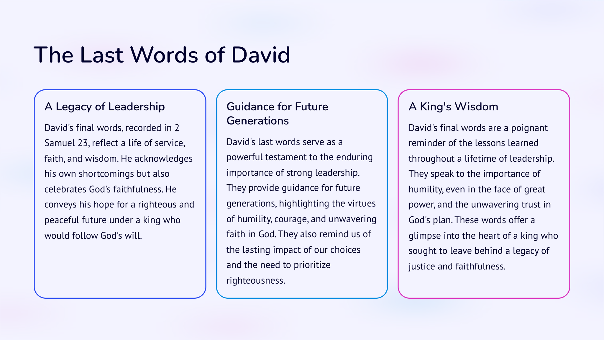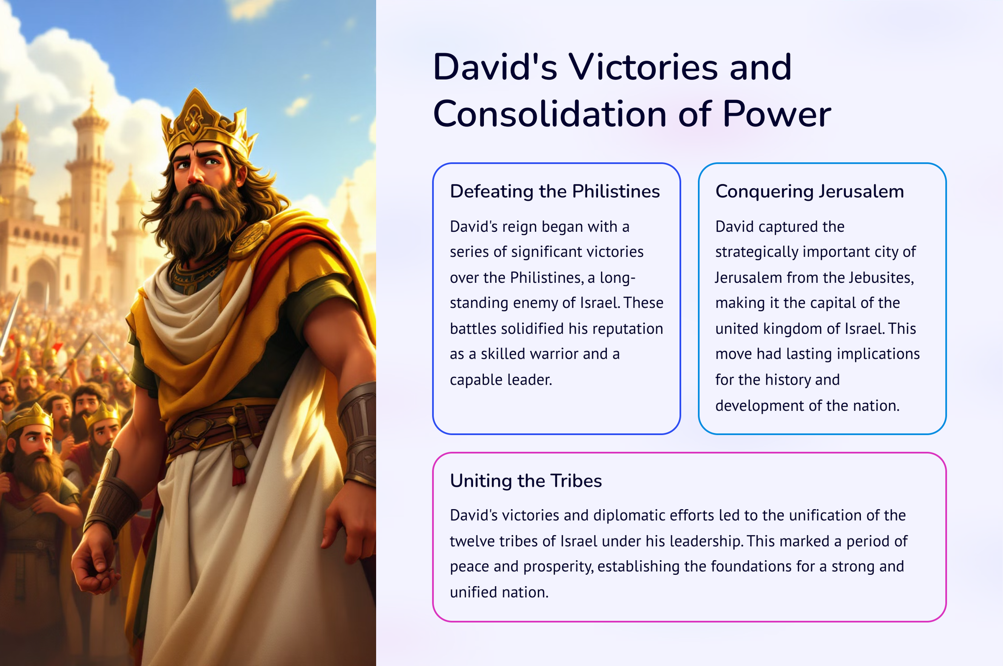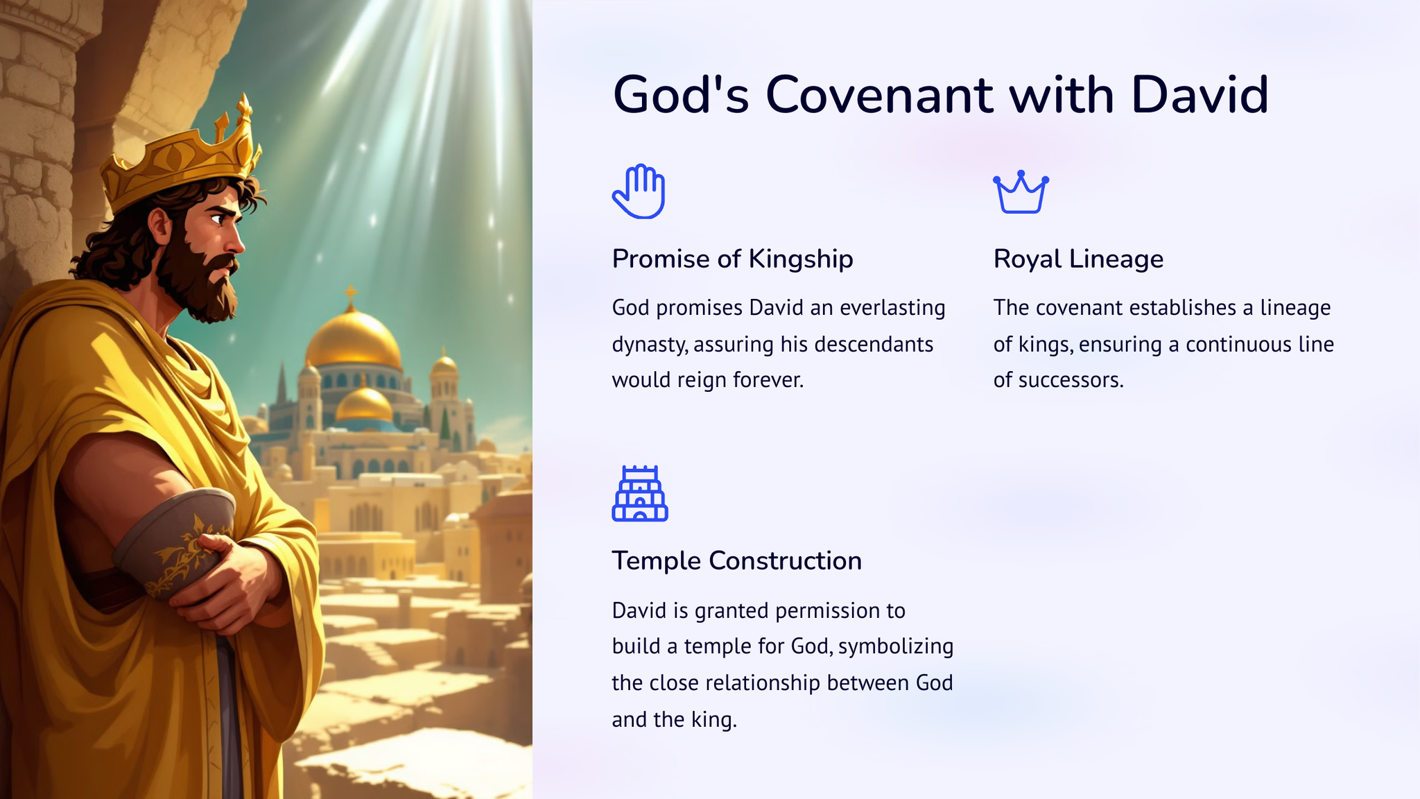 Kry 'n dieper begrip van die opkoms van koningskap in antieke Israel met 2 Samuel: Van koning Dawid tot koningskap. Verken die storie en gebeure wat tot hierdie betekenisvolle oorgang gelei het deur die lens van koning Dawid se bewind. Kry insig in hierdie deurslaggewende tydperk in die Bybelse geskiedenis.