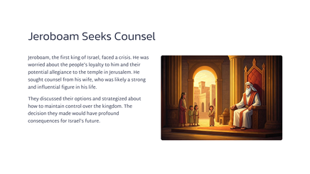 Hierdie eenheid verken die lewe van koning Jerobeam en sy keuses.