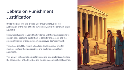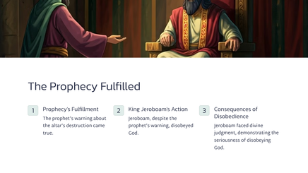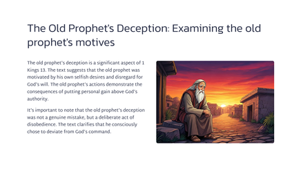 Hierdie les ondersoek die verslag van 'n profeet wat God se direkte opdragte verontagsaam het, wat tot ernstige gevolge gelei het. Dit beklemtoon die belangrikheid van gehoorsaamheid en vertroue in God se plan, selfs wanneer dit moeilik of onlogies lyk.