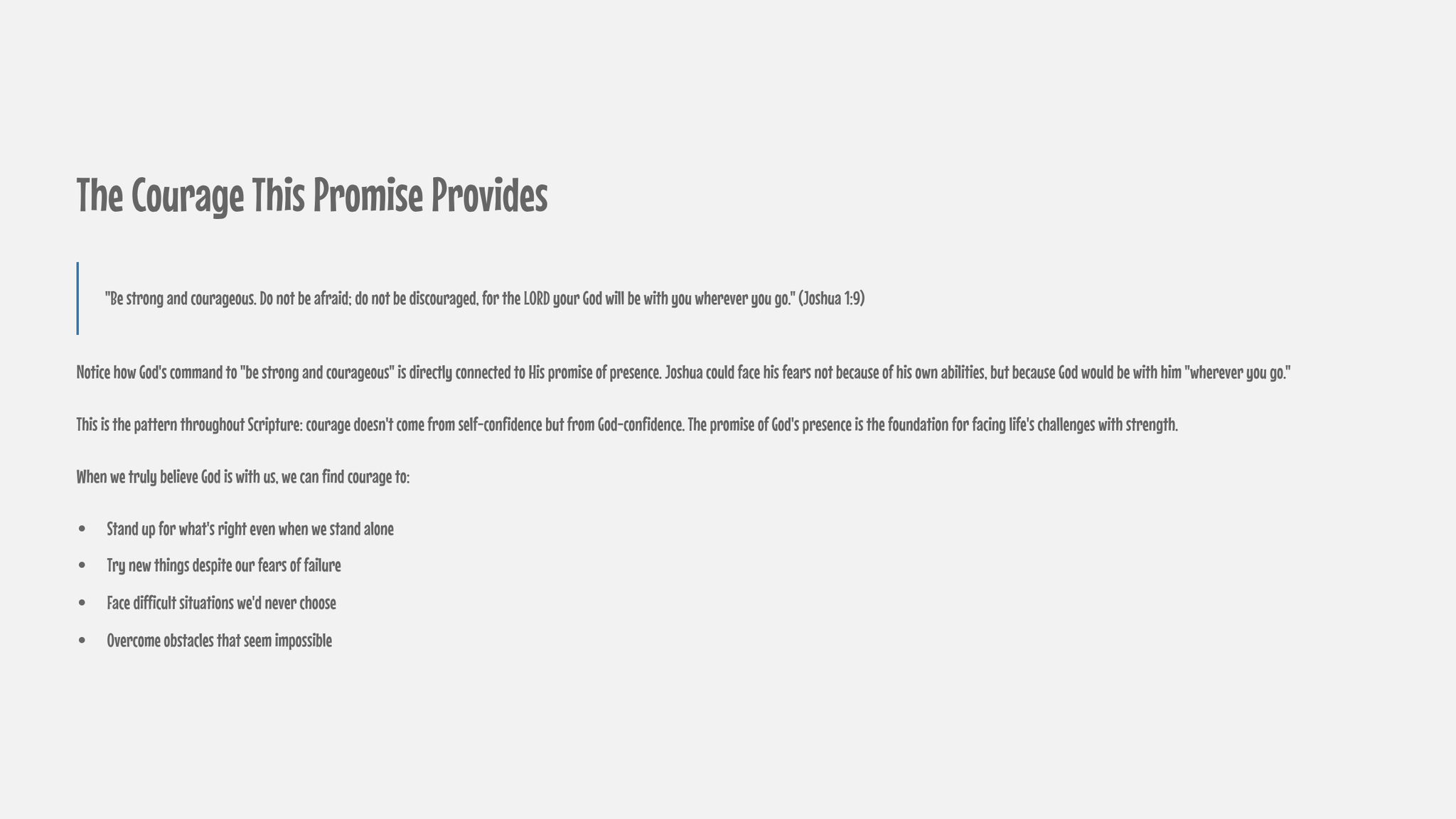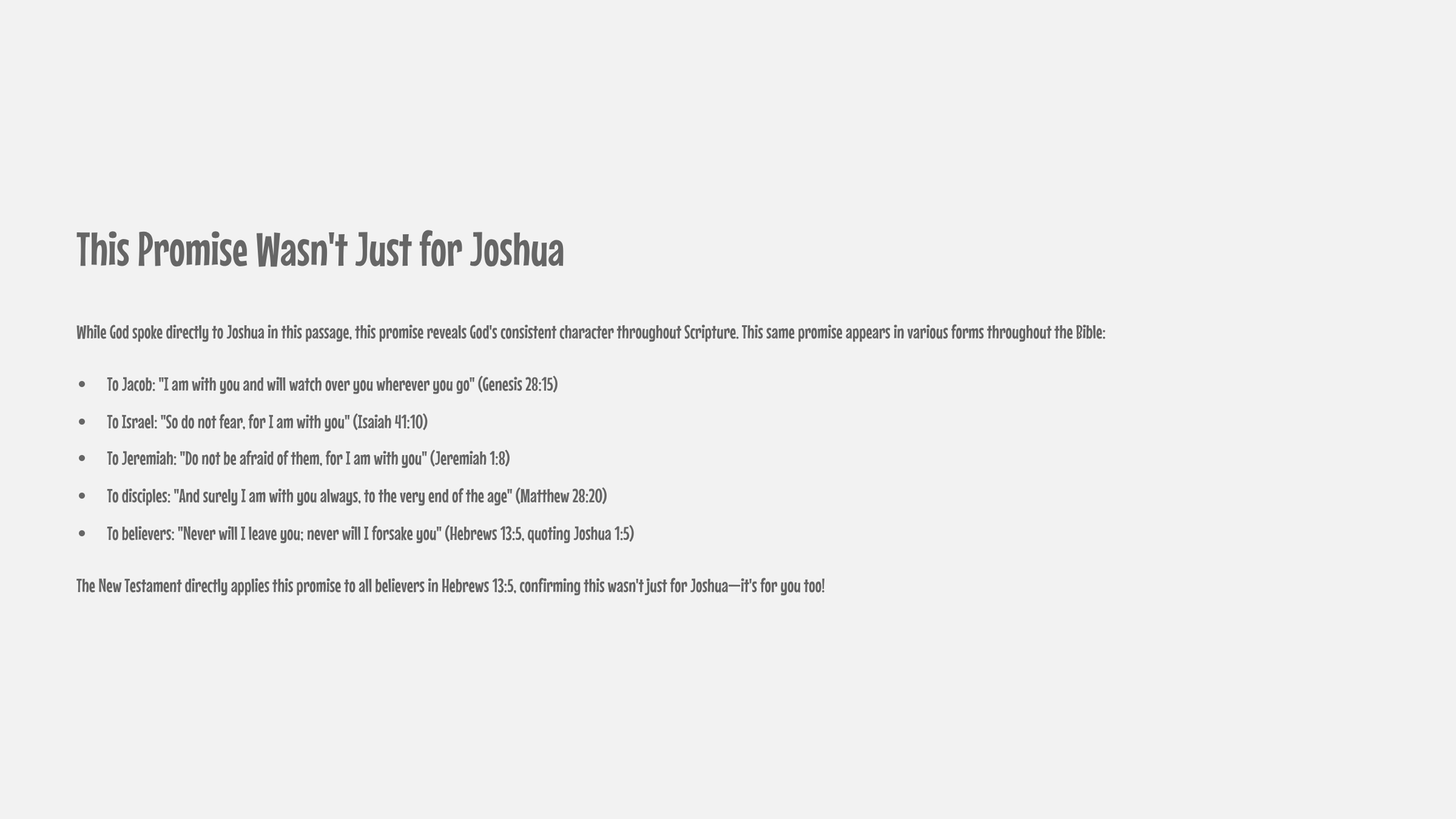 • Bible exploration: Joshua 1:1–9 (focus on verse 5)