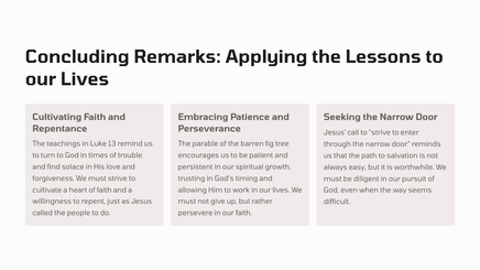 In a world filled with uncertainty and challenges, the gospel of Luke offers timeless wisdom on how to navigate life's difficulties. This teaching unit explores the profound lessons found in Luke 13, guiding us towards a deeper understanding of repentance, faith, and the transformative power of God's kingdom.
