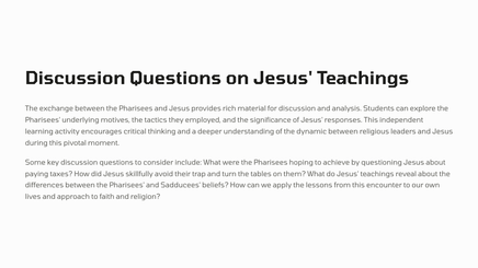 In this passage, the Pharisees try to trap Jesus by asking him about paying taxes to Caesar, a sensitive political issue at the time. Jesus responds with wisdom, revealing the true nature of their motives and providing a teachable moment about giving to God and to the authorities.