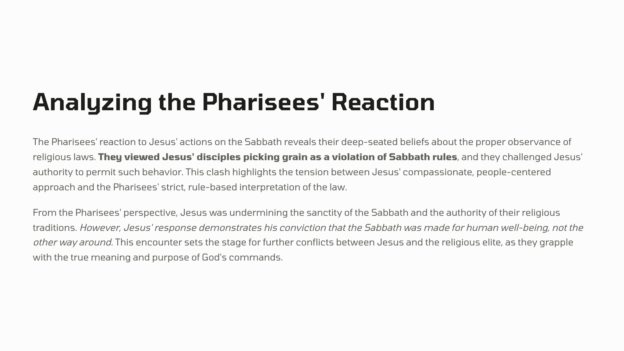 Dive into the biblical account of Jesus and his disciples facing the Pharisees' scrutiny over their actions on the Sabbath. Uncover the profound teachings and timeless principles that emerged from this pivotal encounter.