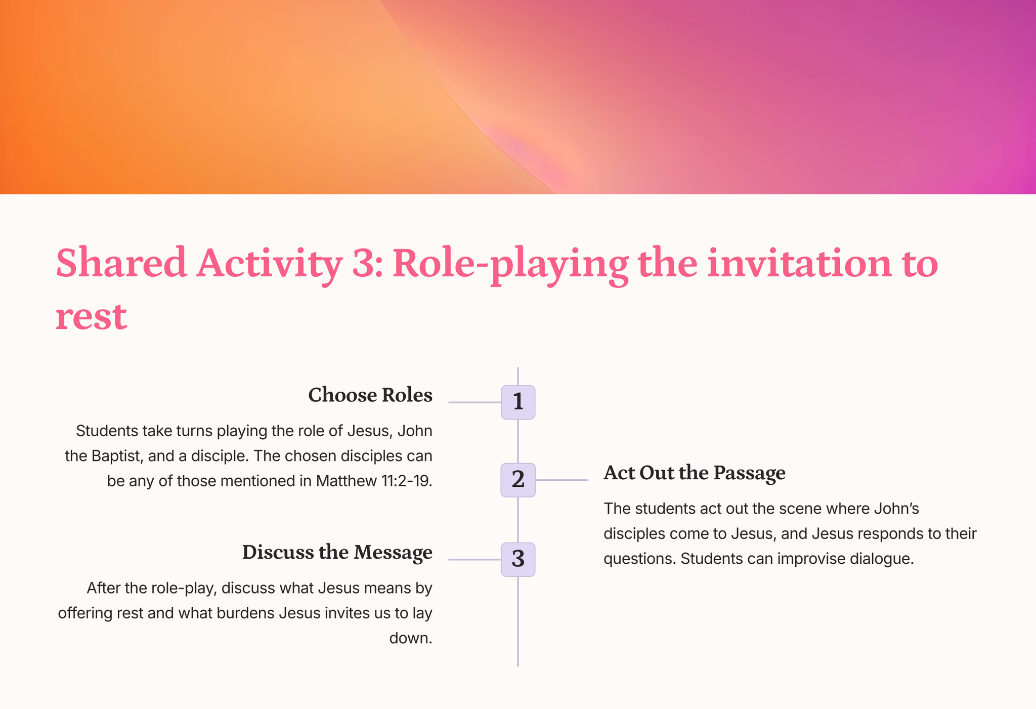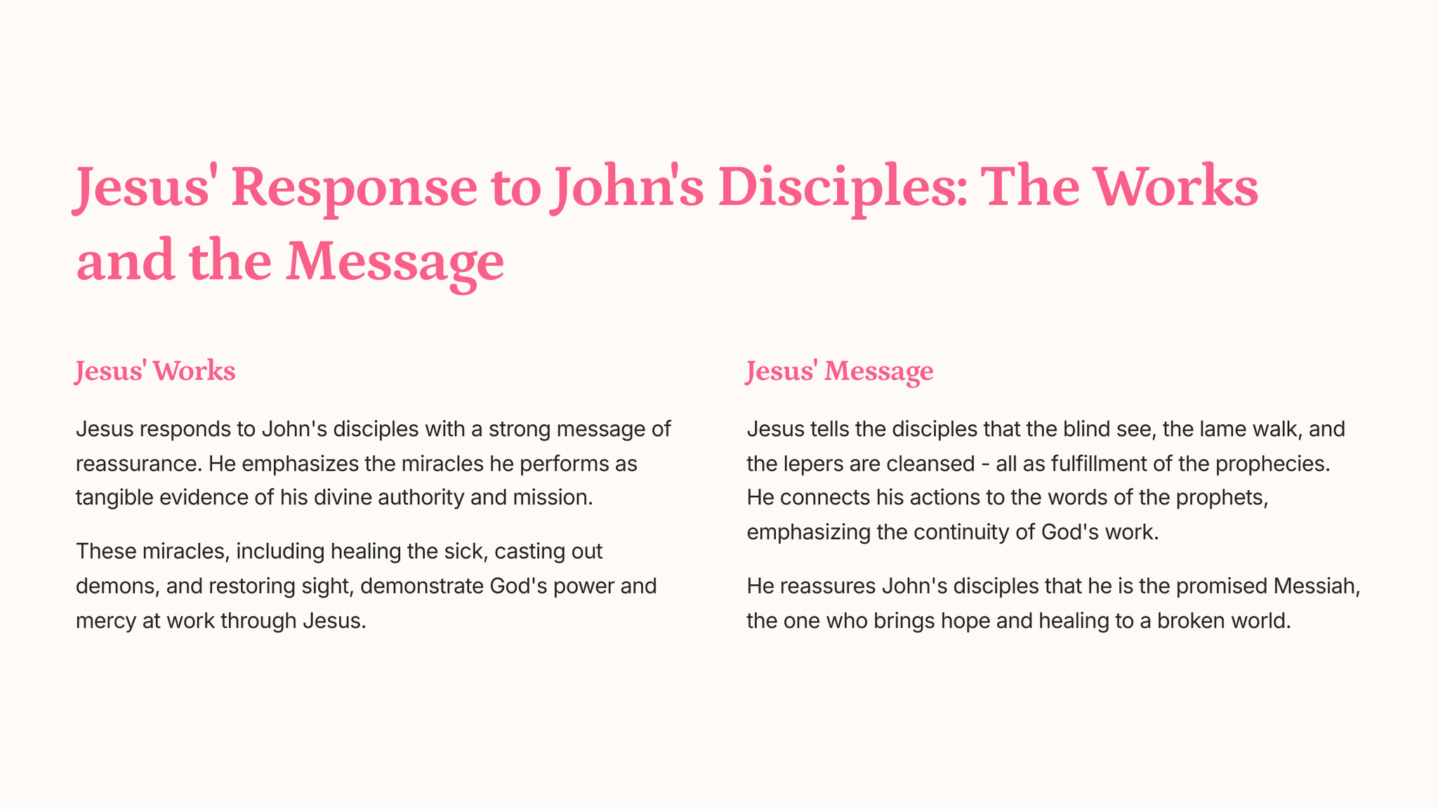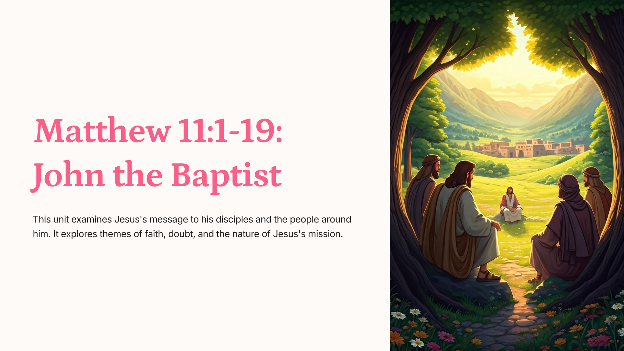 This unit examines Jesus's message to his disciples and the people around him. It explores themes of faith, doubt, and the nature of Jesus's mission.