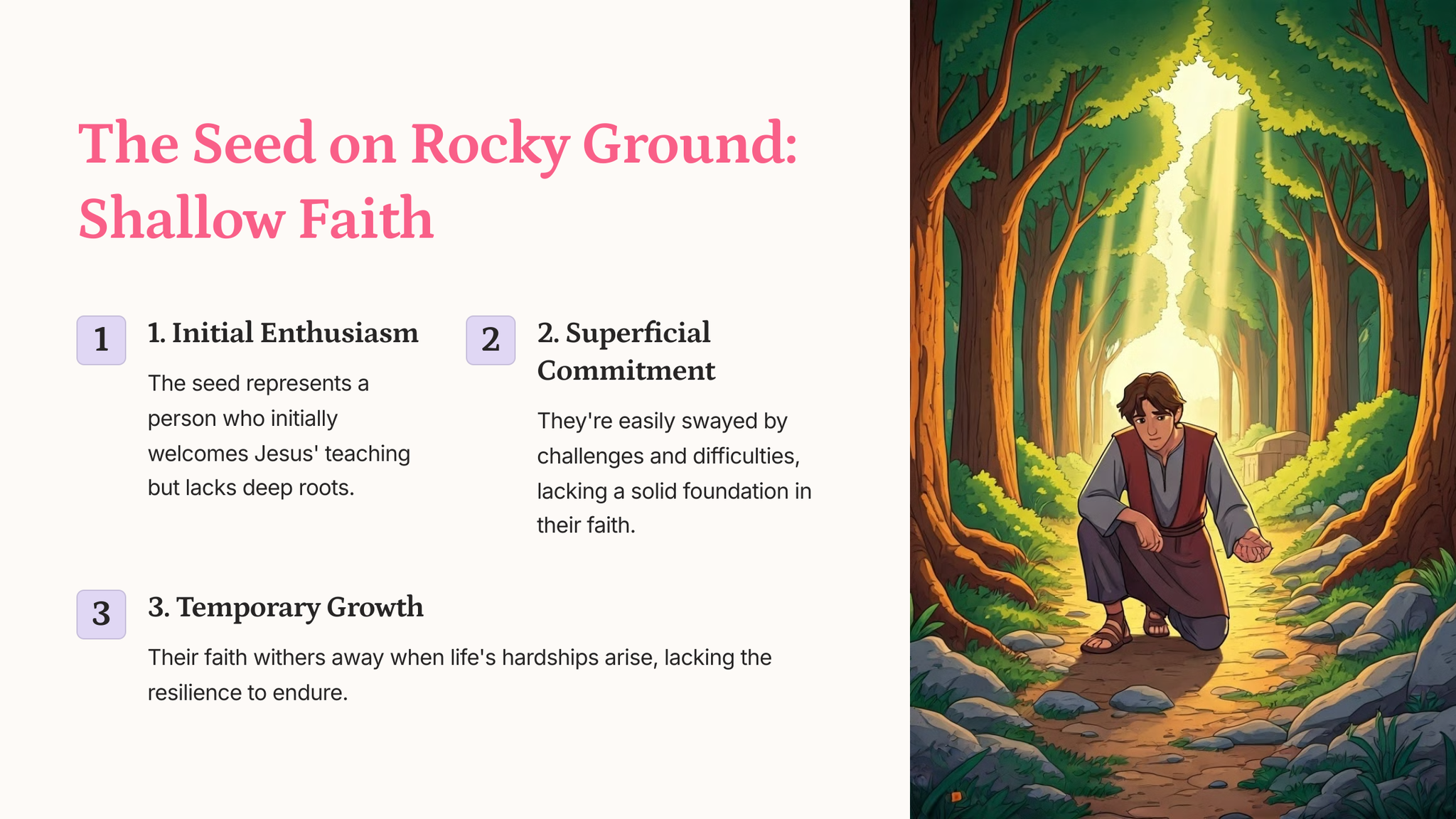Jesus, the teacher, shares a powerful parable that uses the simple act of sowing seeds to teach about the different ways people respond to God's word.