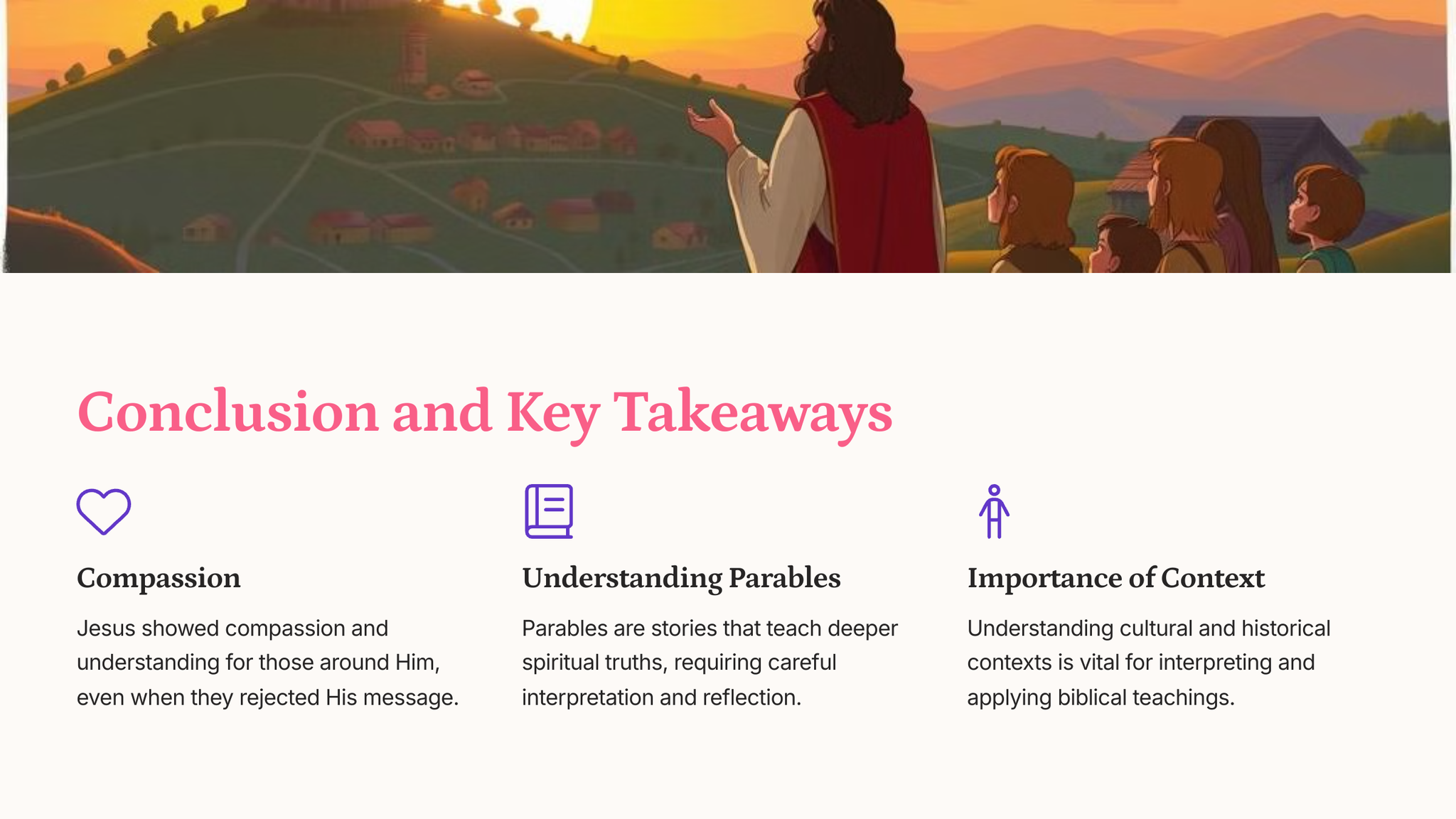 Jesus teaches through parables, short stories with hidden meanings, illustrating the kingdom of heaven.