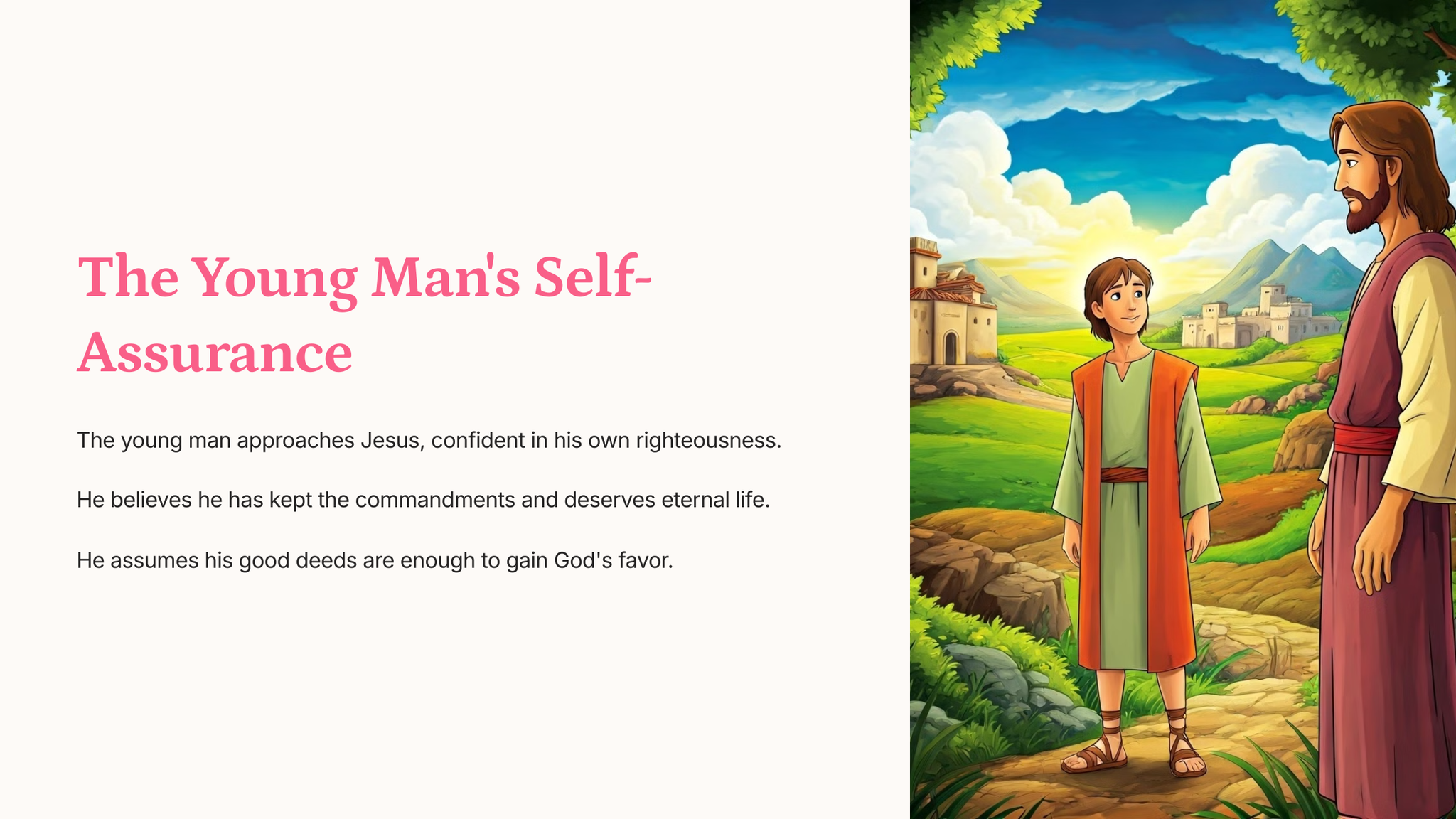 He was confident in his good deeds and asked what he needed to do to inherit eternal life.