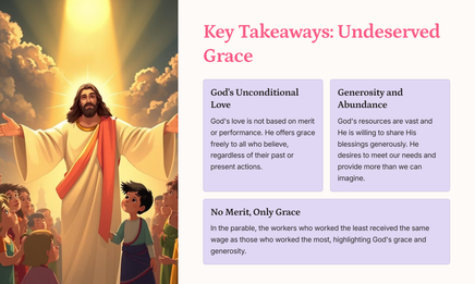 This story teaches about God's grace and how He rewards us based on His mercy, not our merit.