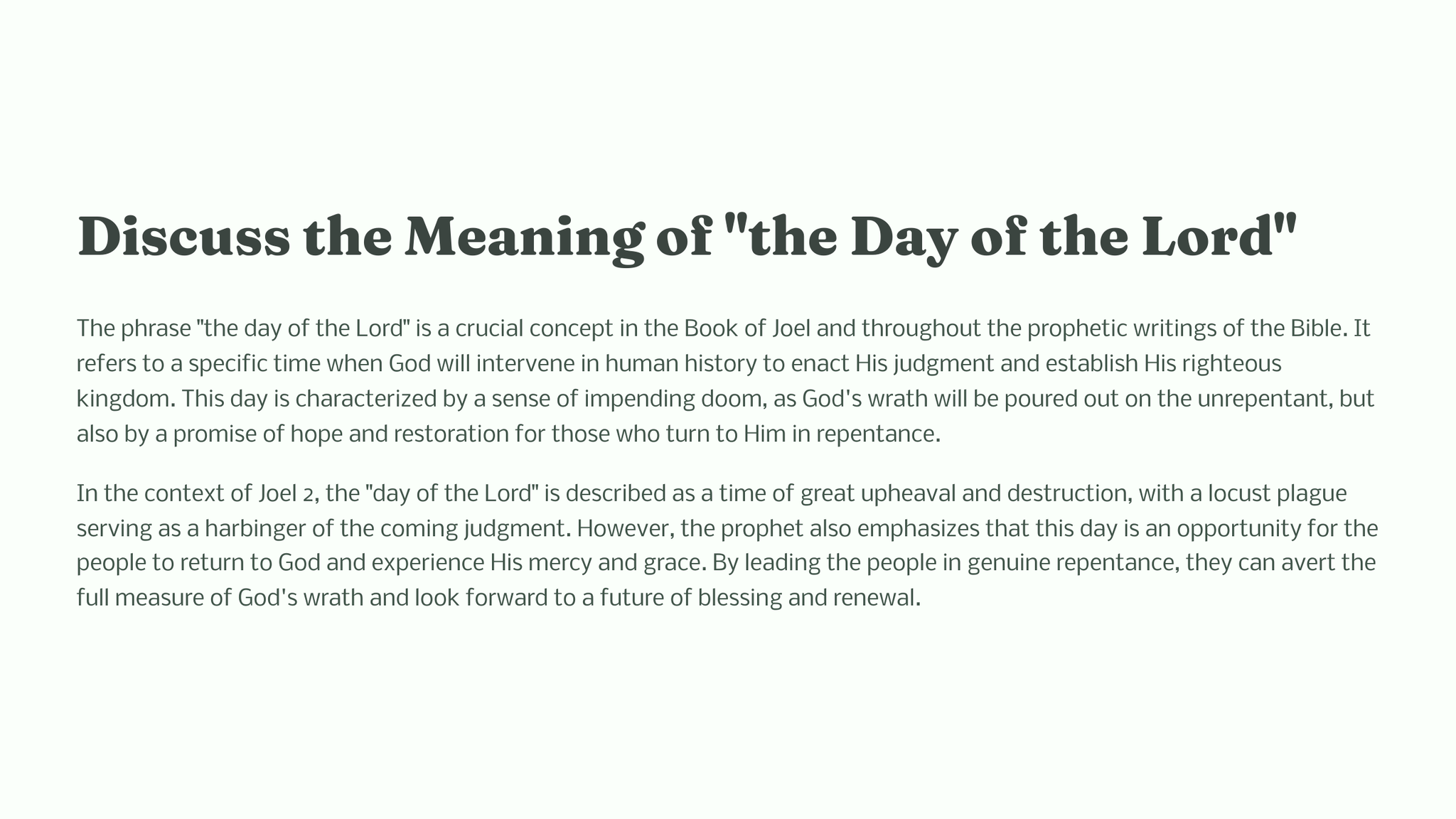 The book of Joel in the Bible provides powerful lessons about repentance and God's mercy. In chapter 2, the prophet Joel delivers a message from God, urging the people to return to Him with all their heart.