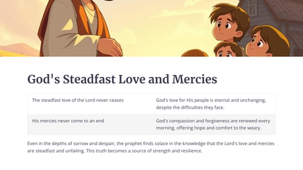 In the midst of profound lament and anguish, the prophet Jeremiah offers a message of hope and restoration for the people of God. This powerful passage guides us through the depths of human suffering and points us towards the everlasting mercies of the Lord.