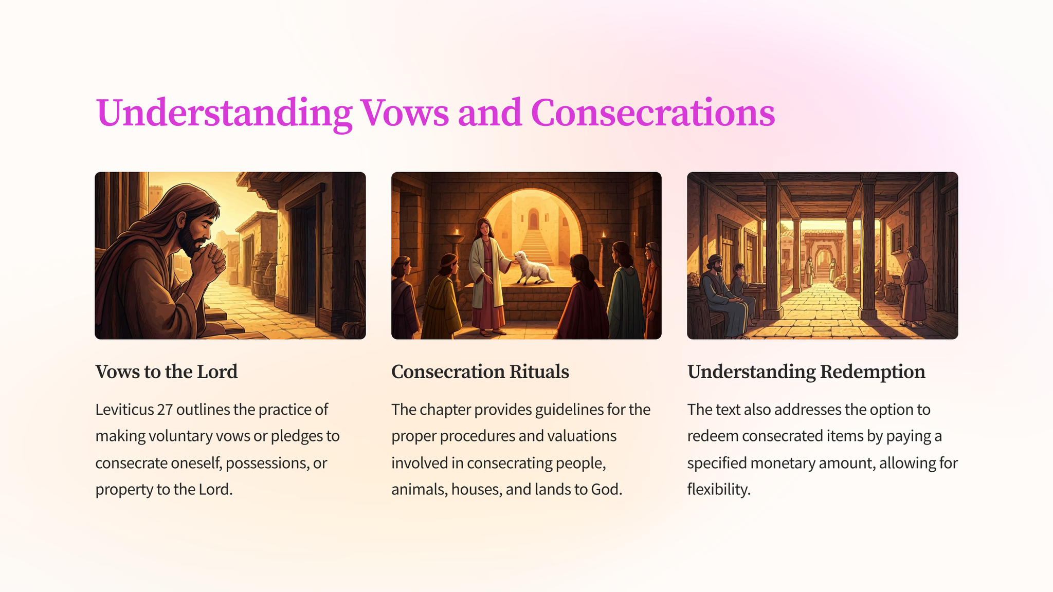 Explore the intricacies of consecration and redemption as outlined in the 27th chapter of the Book of Leviticus. Discover the profound spiritual insights and practical applications of this ancient text.