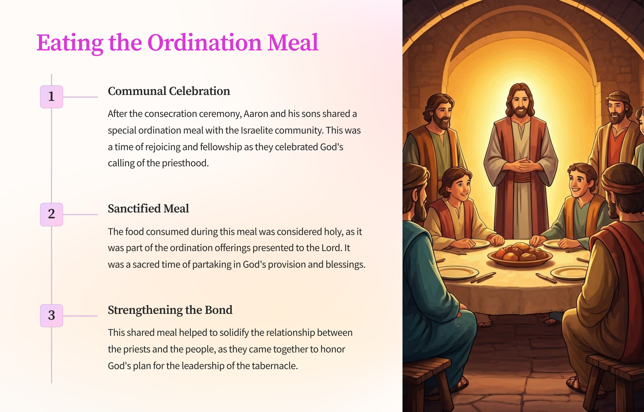 In this pivotal chapter, we witness the solemn ceremony where Aaron and his sons are anointed and consecrated as priests, setting them apart for the Lord's service in the Israelite community.