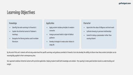 Book of Proverbs 6: Teaching Unit