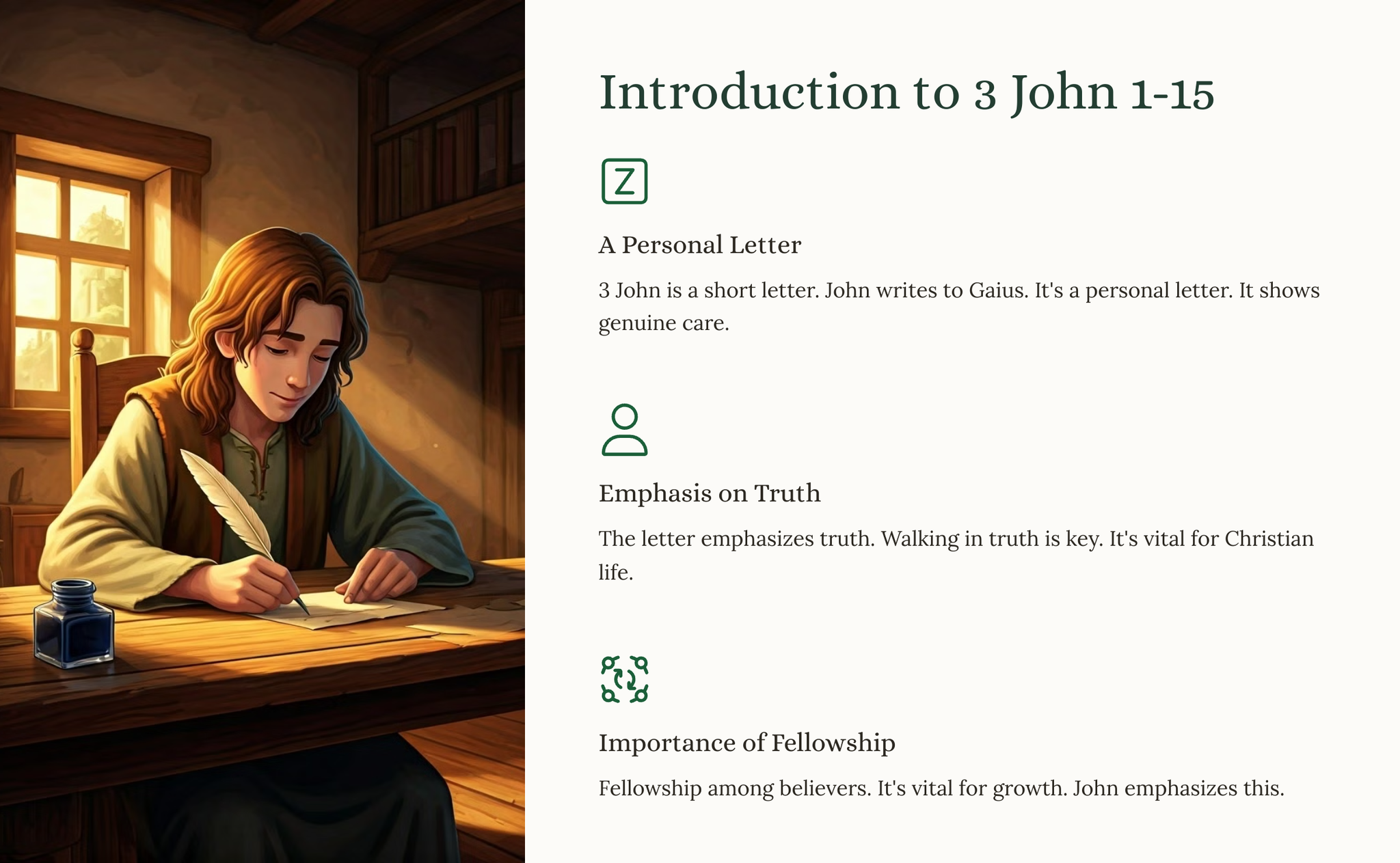 The letter focuses on truth, love, and hospitality. It's a personal message, full of warmth.