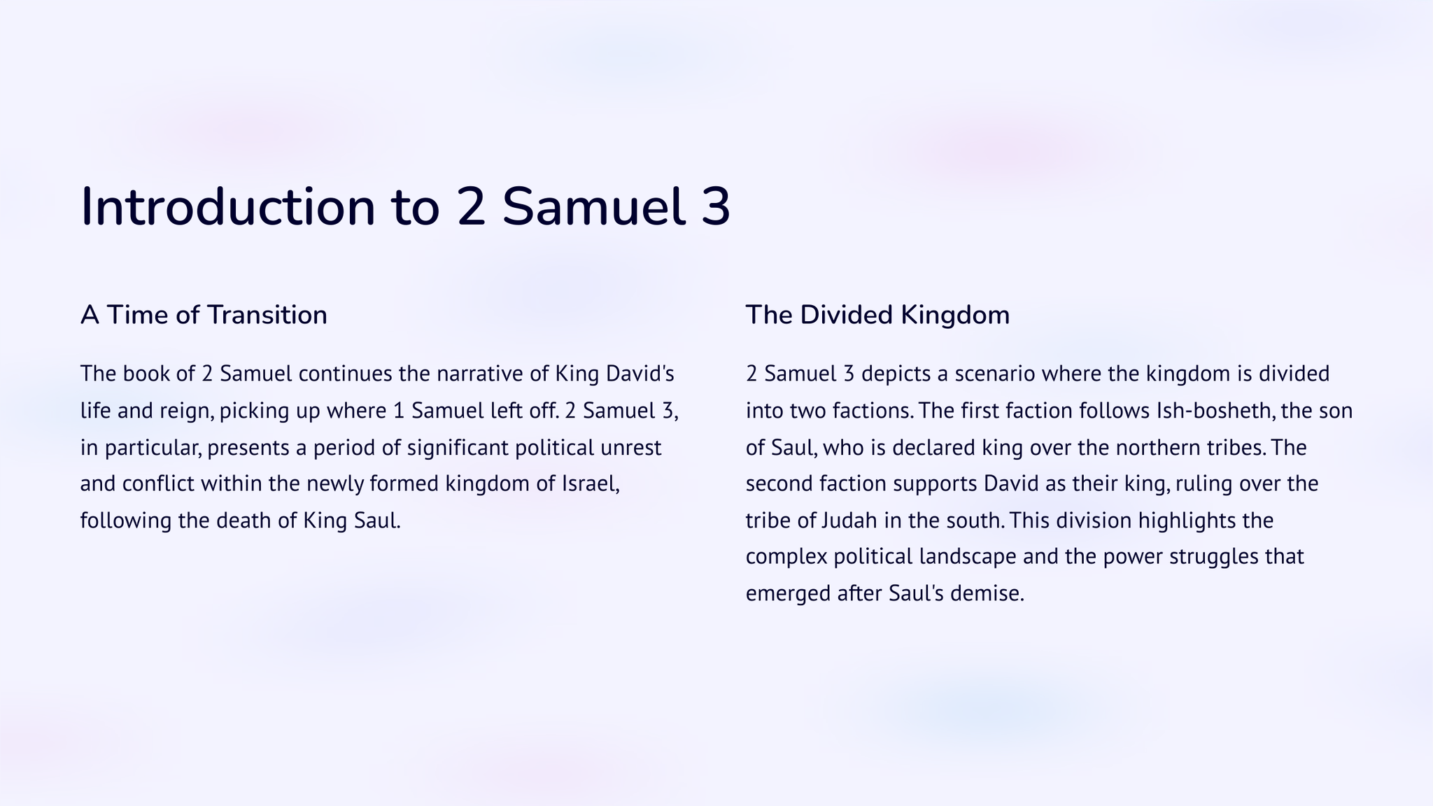 This comprehensive guide delves into the historical and political context of 2 Samuel 3, providing expert insights and analysis for a deeper understanding of the divided kingdom. Benefit from objective and science-backed information, with clear explanations of key events and themes.