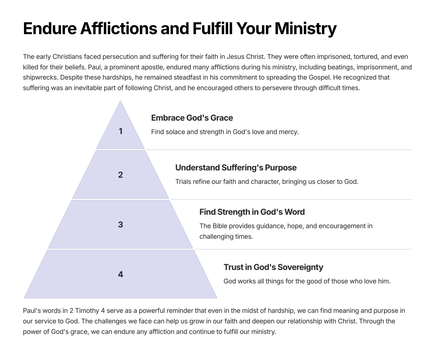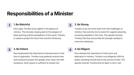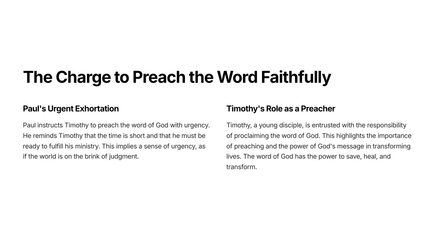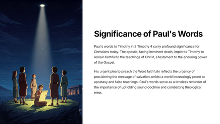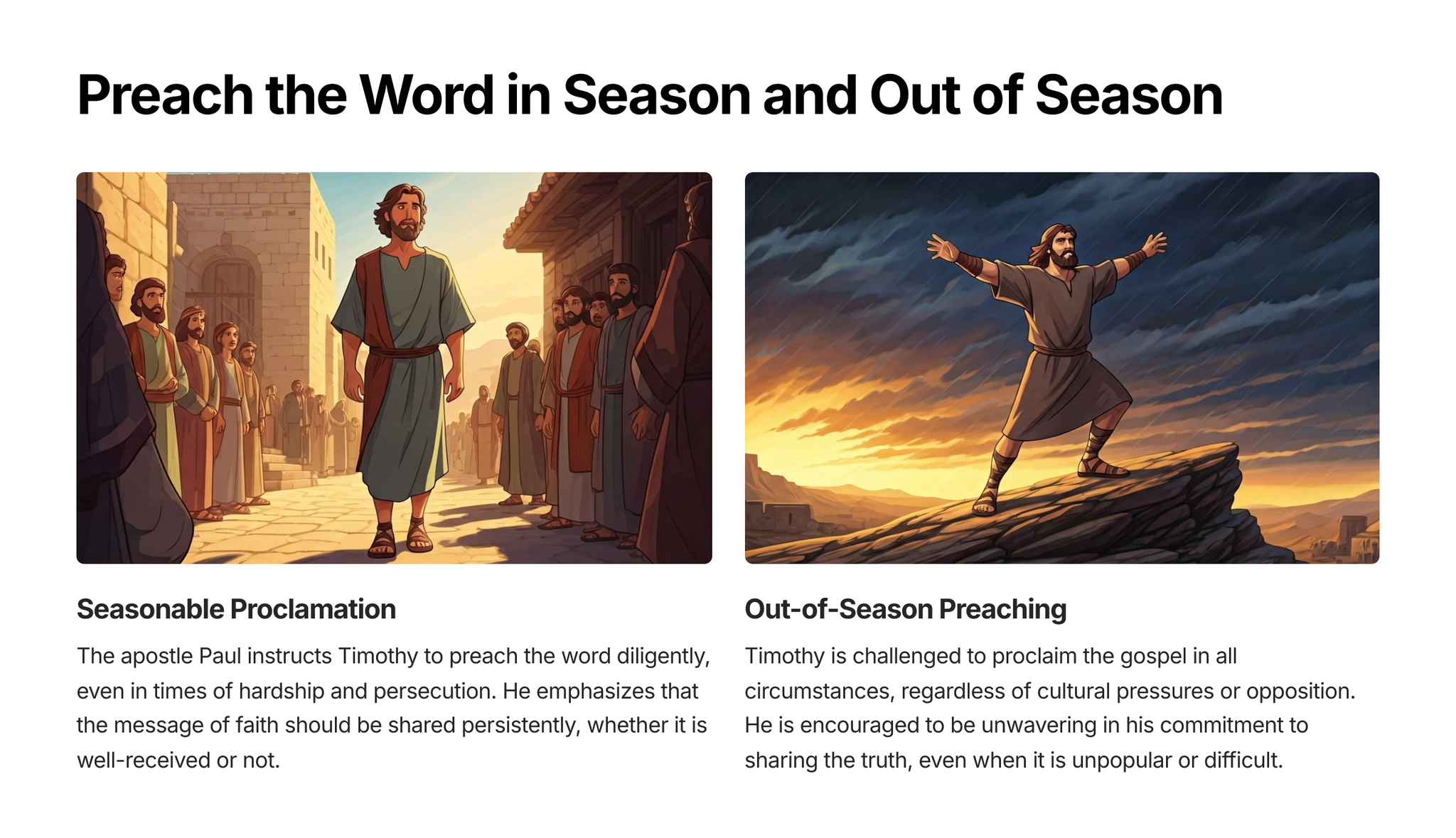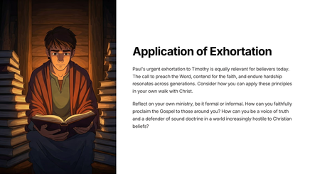 The apostle Paul, nearing the end of his life, wrote this powerful letter to his young protégé, Timothy. Paul instructs Timothy to be diligent in the work of ministry and to proclaim the gospel with urgency and faithfulness. This message is a timeless reminder for all believers, urging us to boldly share the good news of Jesus Christ.