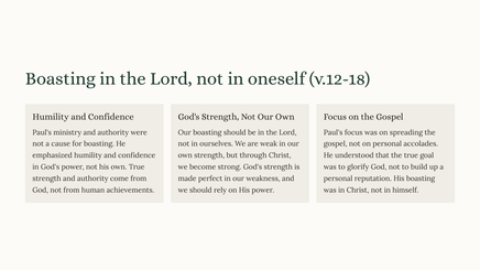 Paul's ministry was not based on outward appearances, but on the power of God. He was willing to suffer for the sake of the Gospel and he was not afraid to confront those who opposed him.