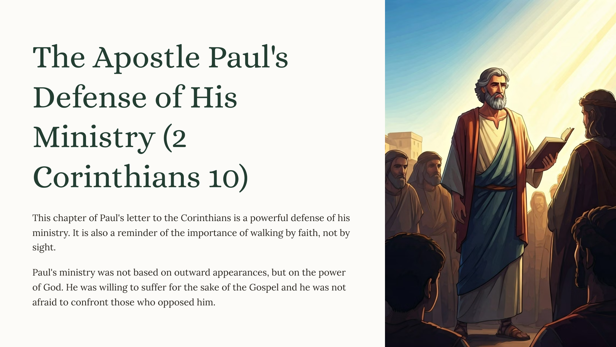 This chapter of Paul's letter to the Corinthians is a powerful defense of his ministry. It is also a reminder of the importance of walking by faith, not by sight.