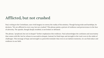 The apostle Paul wrote 2 Corinthians during a time of great difficulty in his ministry. He faced persecution, opposition, and even doubt from those he had ministered to. Yet, amidst the struggles, Paul found strength and purpose in the gospel message. He understood that his weakness allowed God's power to shine through him, making him a vessel of hope and grace.