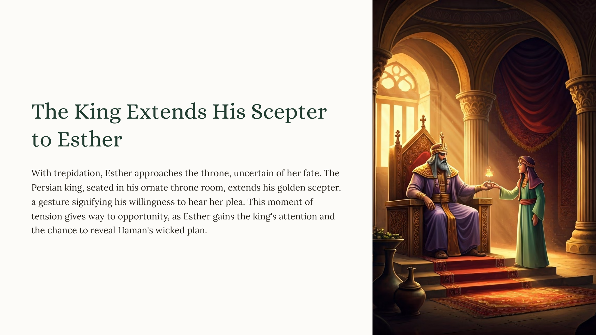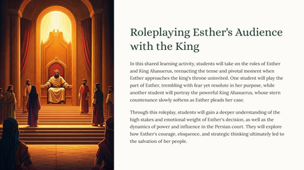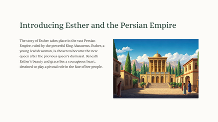 Discover the captivating tale of Esther, a young Jewish woman who rises to become the queen of Persia and bravely risks her life to save her people from a deadly plot.
