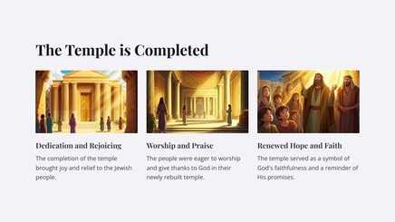 This teaching unit delves into the inspiring story of Ezra 6, highlighting the rebuilding of God's temple in Jerusalem.