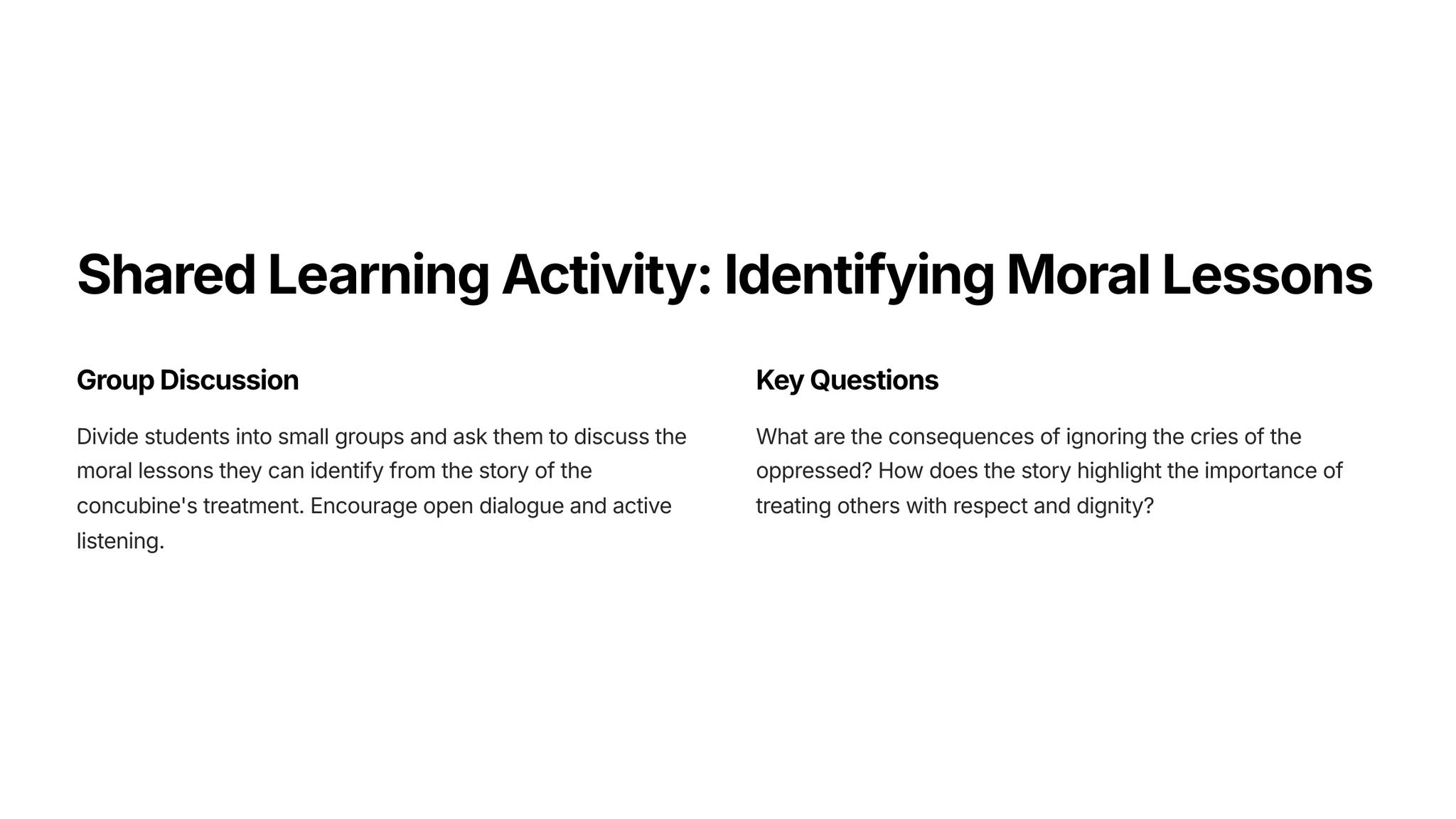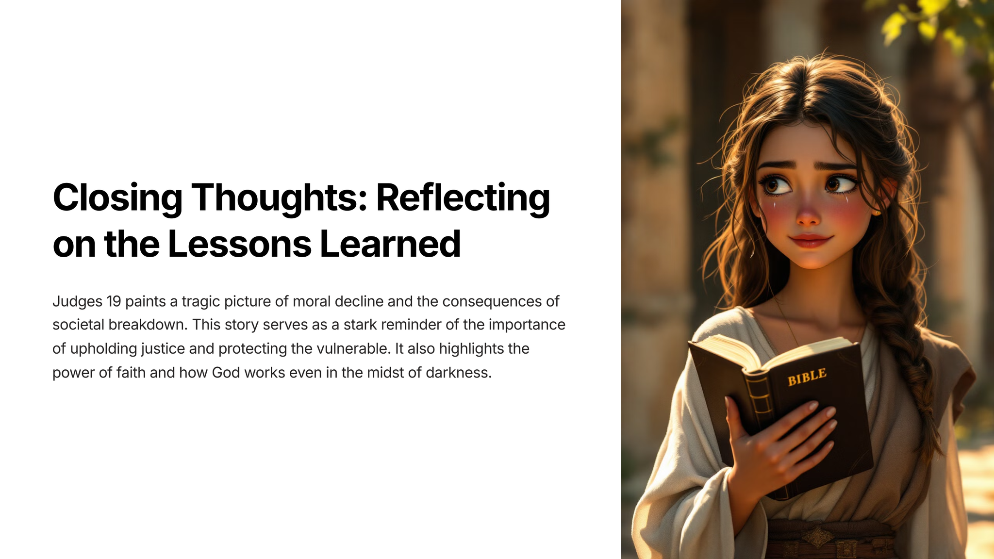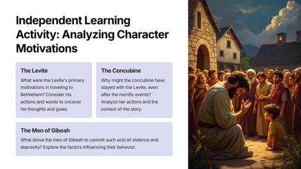 This teaching unit will explore the story of Judges 19, analyzing its themes of violence, betrayal, and the consequences of moral decline in a society.