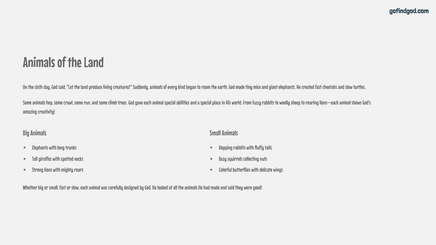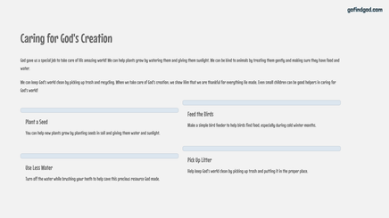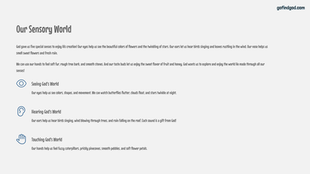 Celebrate the beauty and creativity of God's world in Week 3 of the Go Find God Kindergarten Bible series! In this engaging and sensory-rich lesson, children explore how God filled the world with plants, animals, and stars, sparking wonder, gratitude, and hands-on discovery.