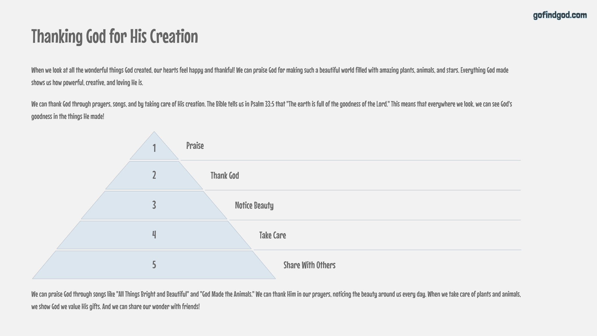 Memory verse: Psalm 33:5 – “The earth is full of the goodness of the Lord.”